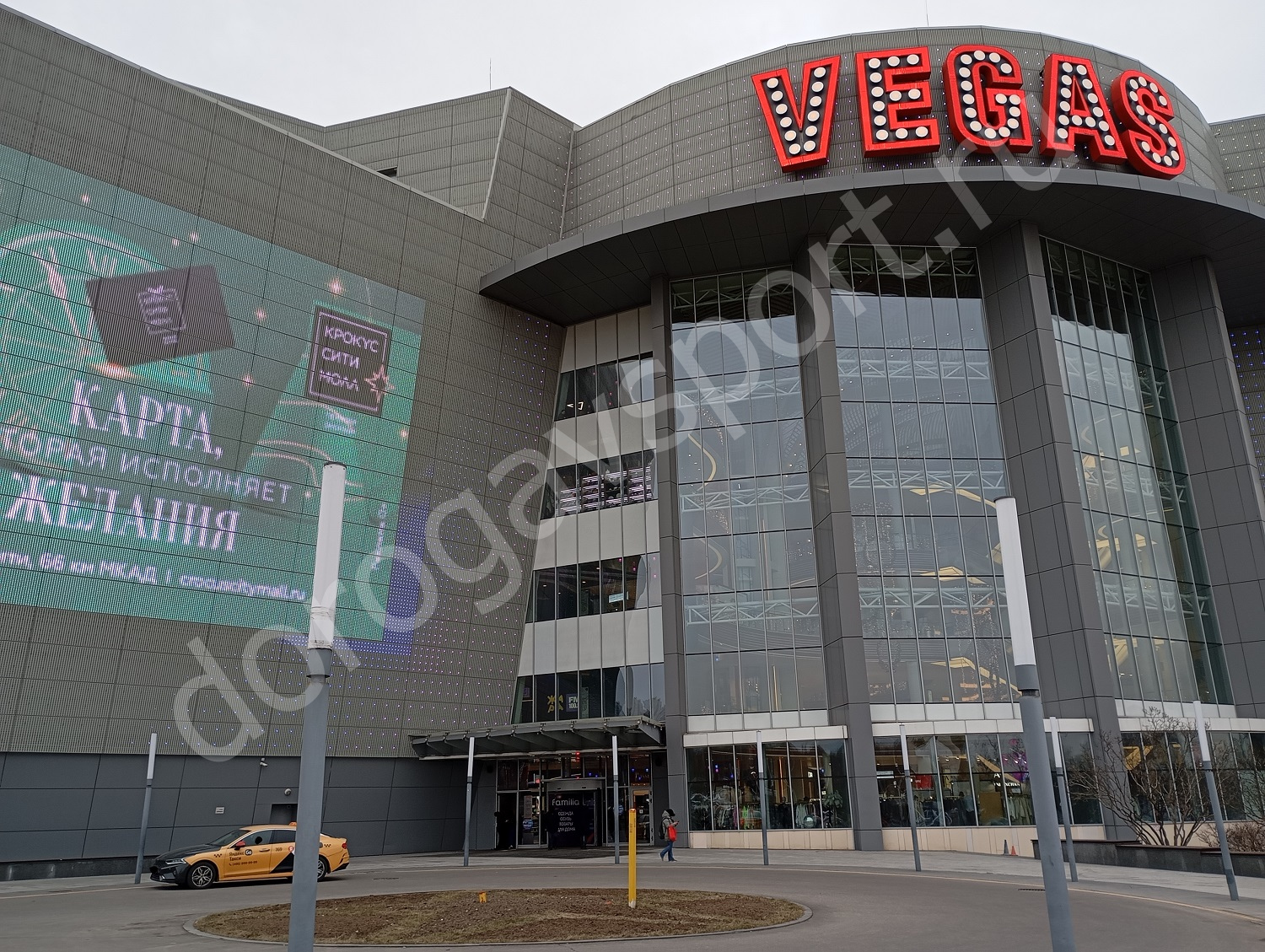 Главный вход в ТРК Vegas Крокус Сити Мякинино, в котором находится магазин спортивного питания 5lb