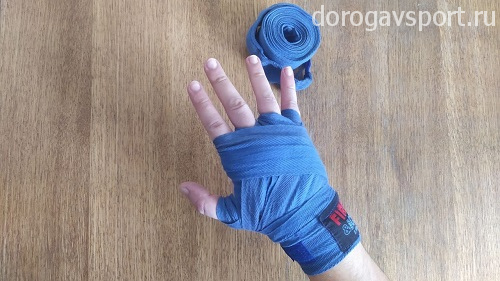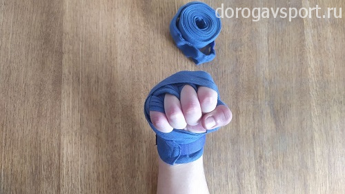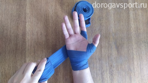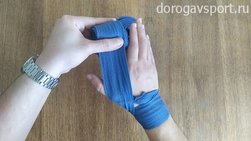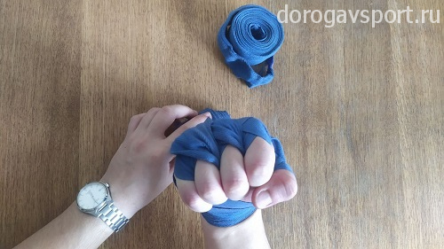 Второй важный момент: старайтесь, чтобы бинт при наматывании не располагался прямо на ладони, всегда старайтесь пускать его ближе к запястью. Это поможет вам полностью сжимать кулак, делая ваши удары жёсткими и предотвращая травмы.